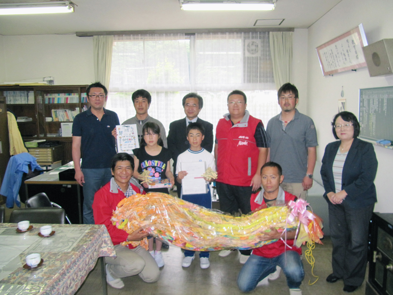 平良第一小学校、宮古青年会議所共同事業「希望の鶴プロジェクト」にて平一小学校よりお預かりした三千羽の折り鶴を6月21日(火)に岩手県宮古市の鍬ヶ崎小学校(笹川正校長)に届けて参りましたのでご報告させて頂きます。